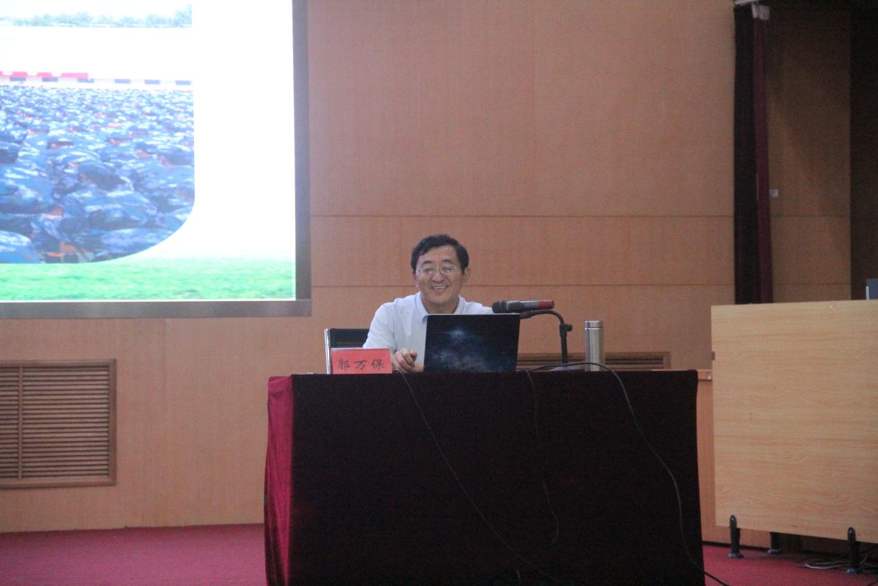 郭万保为全体新生讲授了思政第一课。他以《大学·大道·老员工》为题,围绕大学的产生与发展、大学的性质与功能、大学的构成要素等3个方面,生动解读了大学的发展历史、丰富内涵和本质特性。他从解读校训的视角,就如何度过老员工活向全体新生提出了4点希望和要求。一是立德修身,涵养家国情怀。要树立远大理想,立志报效祖国、服务人民,勇担社会责任,从做好小事、管好小节开始,养大德、修公德、严私德。二是勤奋钻研,打牢学识根基。要加强专业认知,打牢专业知识贮备,提高专业能力和素质;重视文史哲艺等知识学习积累,厚重人生积淀。三是知行合一,提升实践能力。要从基础做起,从小事做起,日积月累,持之以恒,砥砺品质,磨练意志,努力锤炼过硬的实践能力。四是向上向善,增强综合素质。要坚持德智体美劳全面发展,追求人格、学识和谐统一的完美境界,努力成长为高素质“五有”人才。