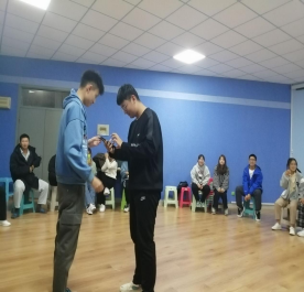 在最先开始的吹大小风的游戏里,看到了同学间将通关机会大方让给其他人的友善,也看到了许多平时看似默不作声,实在才艺满分的高手带了的精彩表演。其后的记忆风暴,让我们每个人在一遍又一遍的复述中,记下来彼此的籍贯,喜好和姓名,让许多平时几乎零接触零了解的同学,在这里迈出了第一步,对彼此都有了印象,给了大家相互认识的机会,加强了班级体的凝聚力。然后在学长的带领下,我们随机分成四个小组,开始共同合作,一起为了自己的团队出谋划策,努力练习,同学们都有着较强的集体荣誉感,而这种集体荣誉感在活动中因为彼此不断的熟悉而展露出来并一点点加深。最让人意外也最让人开心都是,在最后的半个小时里,同学们已经不再需要学长的引导,自发的玩起了游戏,勇于表现自己,即使是那几个极内向的同学在这种氛围里也变得与往常大不相同。