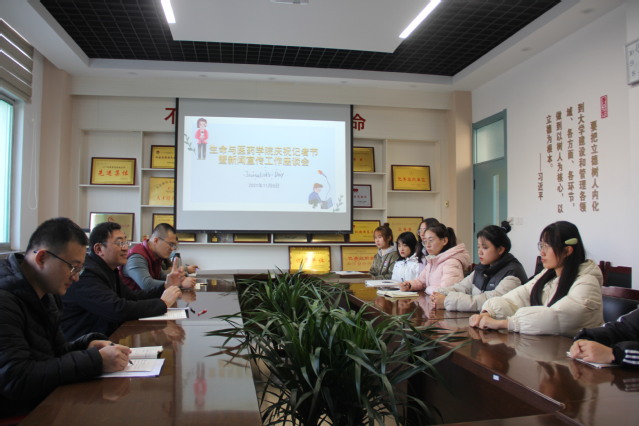 11月8日下午,谈球吧在13号教学楼270室召开庆祝第22个中国记者节暨新闻宣传工作座谈会。公司党总支书记郭万保、党总支副书记陆广峰、新闻宣传中心主任翟静涛、新媒体指导教师陈颖洁以及中心各部门成员代表参加会议。会议由陆广峰主持。