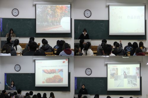 随即,各队的参赛队长依次上台讲解精心制作的PPT,向同学们介绍作品设计的灵感来源,分享自己采集树叶的过程以及粘贴、裁剪树叶时发生的趣事,并向同学们展示创作这份作品的设计理念。各团队精心准备的答辩逻辑清晰,层次分明。随着一个个精妙绝伦的答辩,此次决赛接近尾声。在所有队伍答辩过后,由评委们进行最后的统分,为达到公平公正公开的效果,当场公布获奖队伍的名单,领奖地点将于活动群内发布。