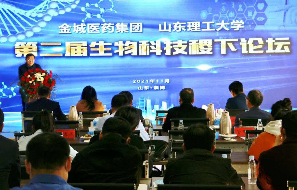 11月13日,金城医药集团·谈球吧网页版登录入口第二届生物科技稷下论坛暨“山东省技术创新中心、金城生物研究院”揭牌仪式在山东金城医药研究院有限公司举行。公司党委常委、副董事长魏修亭,淄博市科技局副县级干部李伟出席,谈球吧领导班子及部分教师,淄博大学城发展中心朱文成部长,金城医药集团高管及金城医药研究院研发人员参加本次论坛活动。