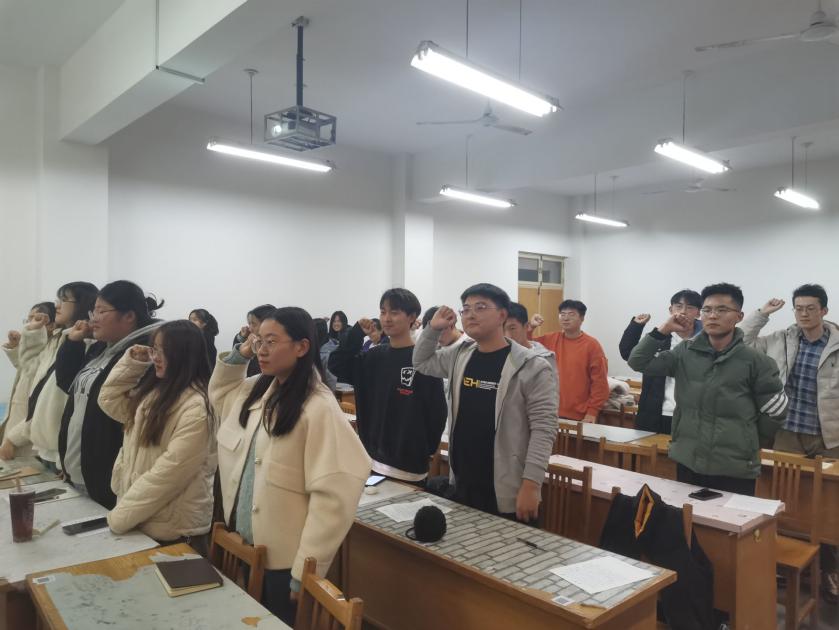 接着,团支部全体成员重温入团誓词。