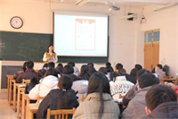 活动伊始,刘强为同学们发放宣传手册。随后,他通过PPT的形式向全体同学介绍集团概况、文化、招聘岗位、薪资待遇、福利待遇、晋升通道以及培训体系等情况。刘强着重围绕毕业生入职后的工作岗位、环境和待遇进行阐述,解答了同学们最关注的工资待遇等问题。李进林、徐荣华为同学们简单介绍了部分工作团体的组建历程、管理体系、工作、招聘人员工作内容、招聘要求。他们结合自身的求职经历为同学们提供求职择业建议,并表示热烈欢迎公司优秀学子的加入。最后,任庆玲通过自身经历向同学们介绍对于鲁南制药集团未来发展的自信,为同学们解答关于就业方面的疑问。