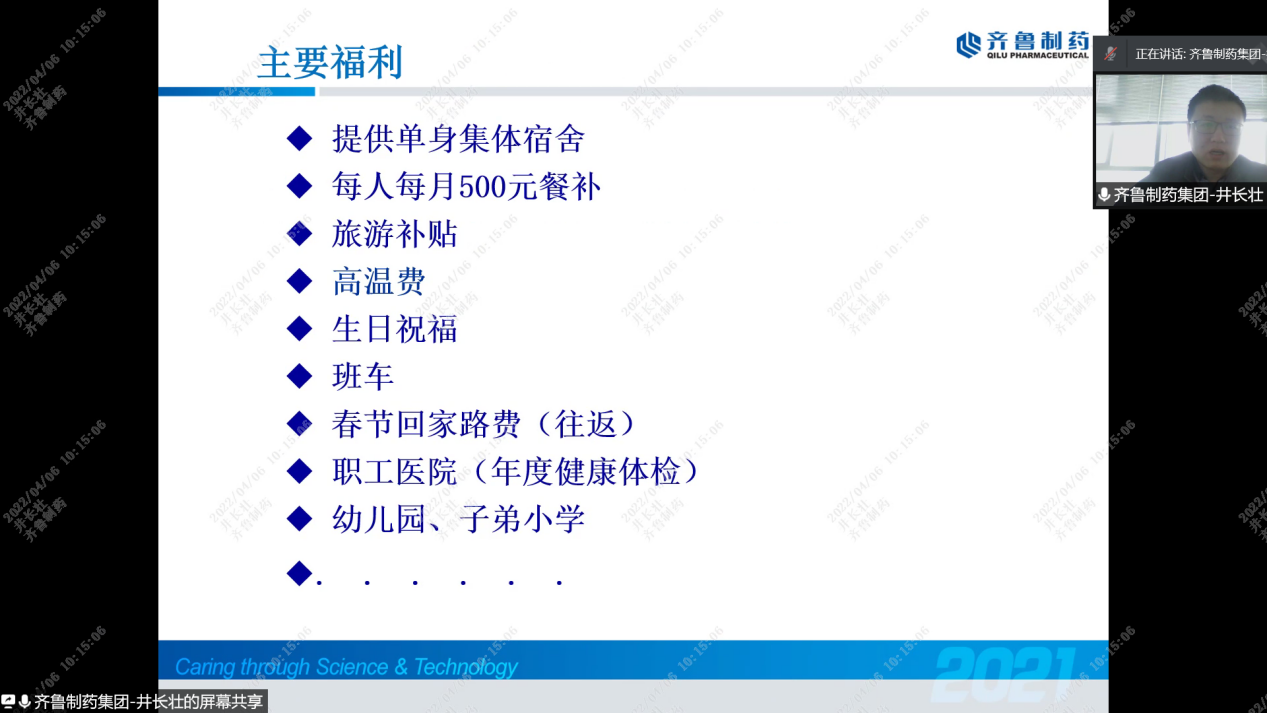 4月6日上午,谈球吧在腾讯会议平台开展第二场就业双选活动,邀请齐鲁制药集团、凯莱英医药集团、山东中科嘉亿生物工程有限公司等三家用人单位作专场宣讲。会议由毕业生辅导员翟静涛主持。