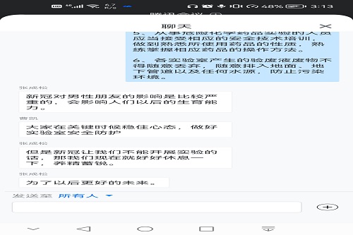 活动期间,全体研究生结合文件精神和实验室实际情况认真学习并积极发言,进一步提高了实验室安全意识。同学们纷纷表示,维护实验室安全,首先要意识到实验室安全的重要性,同时要严格落实实验室基本规定,各项实验基本操作都应以安全为前提按流程开展。