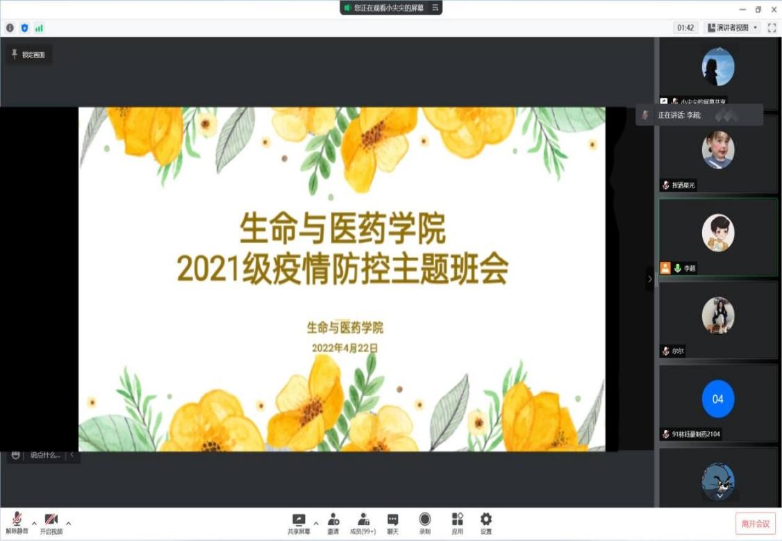4月22日晚,谈球吧2021级利用腾讯会议召开线上疫情防控主题班会,2021级全体员工参加,辅导员李超主持会议。