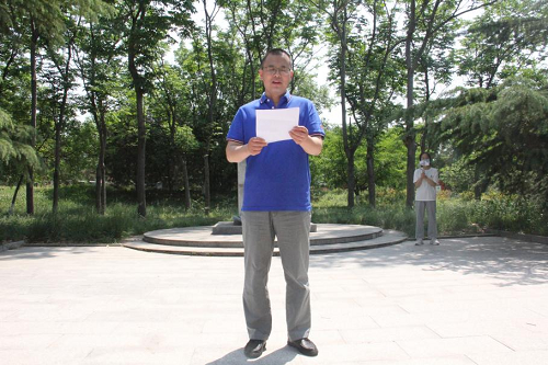 员工代表擦拭冯思广雕像,清扫冯思广雕像周边杂物,并敬献鲜花,以表缅怀之情。