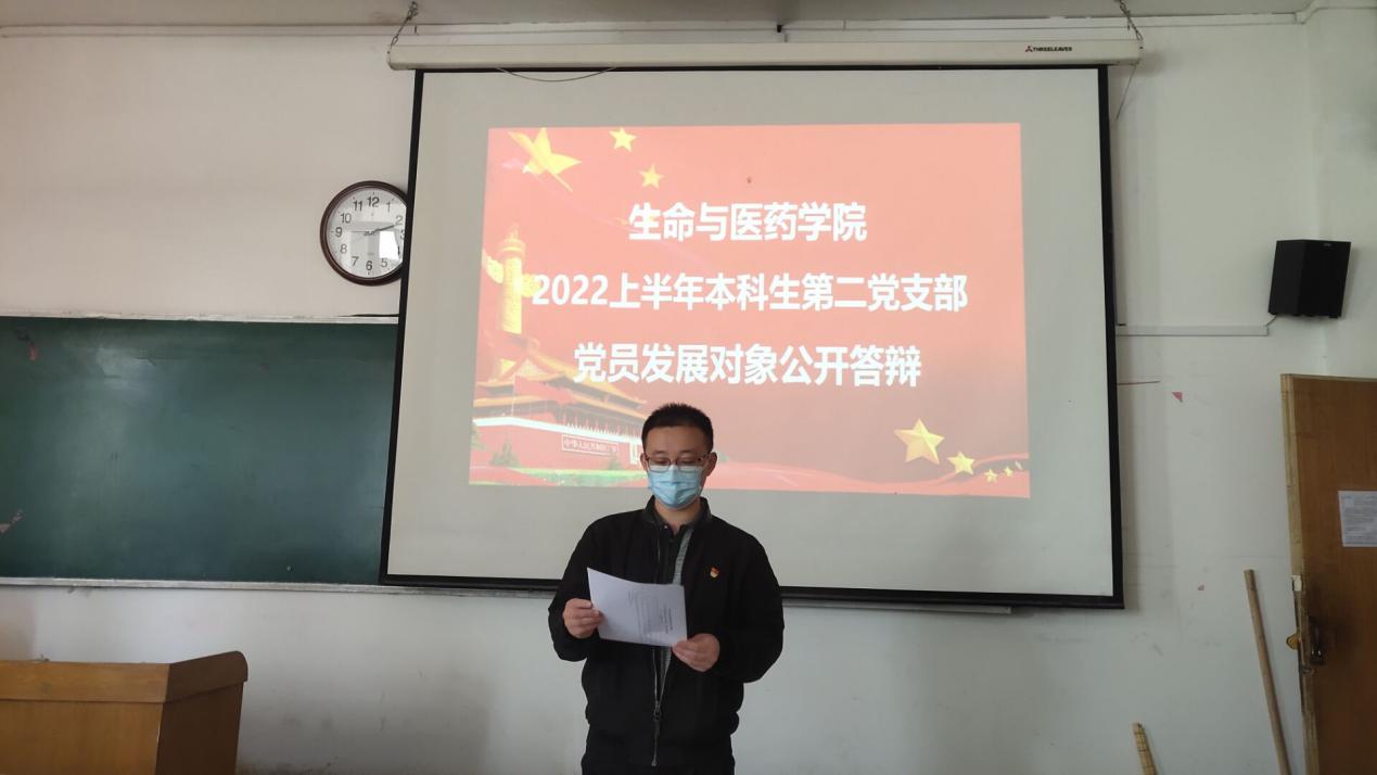 5月15日上午,谈球吧本科生第二党支部在13号楼203室召开2022年上半年党员发展对象公开答辩会,会议由谈球吧本科生第二党支部书记翟静涛主持,支部全体党员及发展对象参与此次会议。