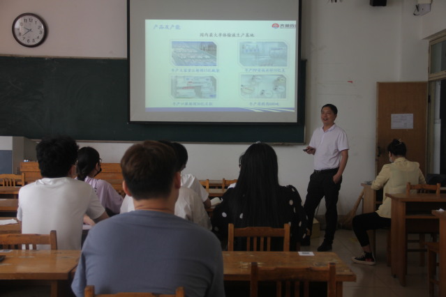 活动伊始,齐都药业有限公司招聘负责人杨晓林通过播放宣传片,简要地向全体员工介绍企业的文化以及发展情况。接着,杨晓林围绕企业概况、招聘岗位、福利待遇、晋升培养以及文化生活等内容进行介绍,并着重讲述了实习过程中可提供的岗位、福利待遇以及晋升途径,并代表企业欢迎众优秀学子能够入职发展。最后,针对同学们在薪资结构、职位晋升等方面存在的疑问,杨晓林进行详细地解答,并现场组织了简历投递。