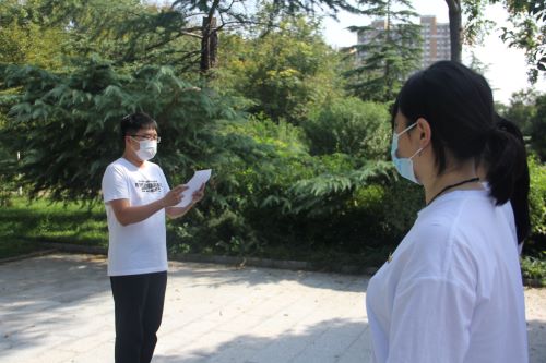 接着,第二届冯思广班班长、支部党员赵智航致追悼词。1931918日,九一八事件爆发,开始了长达14年的抗日战争。赵智航讲到“九一八”,是国耻日,更是中华民族觉醒日,面对残暴的侵略者,英勇顽强的中华儿女没有低头,杨靖宇、赵尚志、赵一曼……无数革命先烈宁可粉身碎骨也不屈服,是他们用自己的身躯换来了中国繁荣的今天,是他们用自己的生命,筑起了中华民族不倒的长城。革命先烈,无名英雄,浩气长存,英魂不灭,人民英雄永垂不朽!