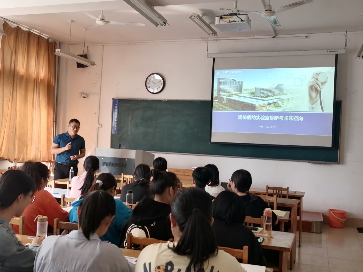 9月28日,杨凤堂经理邀请妇幼保健院医学遗传科主任牟凯走进谈球吧,以“遗传病的实验室诊断与临床咨询”为题,为生物科学(师范专业)大四员工们讲授了一堂内容丰富、生动形象的遗传医学课。牟凯主任兼任山东省罕见疾病防治协会遗传代谢分会主任、淄博市妇幼保健协会出生缺陷防治专业委员会主任。擅长遗传咨询、新生儿遗传代谢性疾病的筛查与诊断、产前筛查与产前诊断、分子遗传学检验等工作。