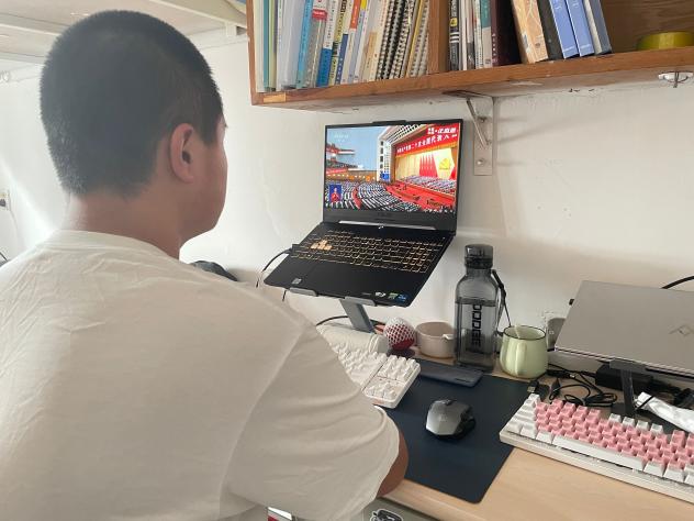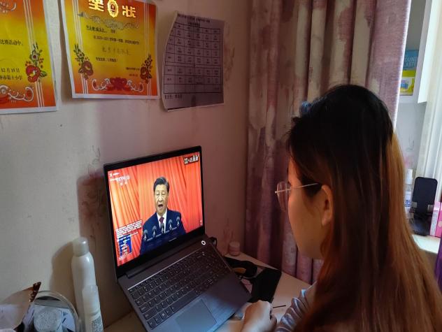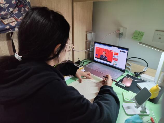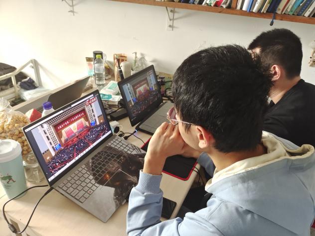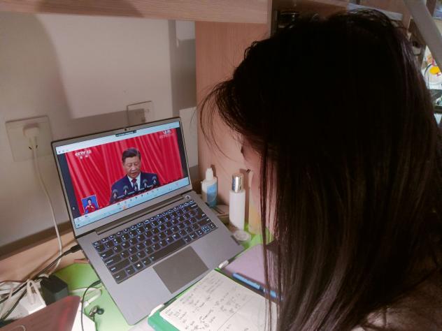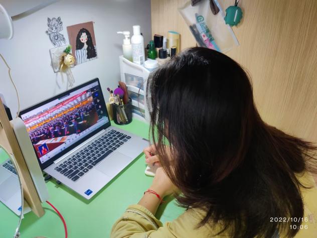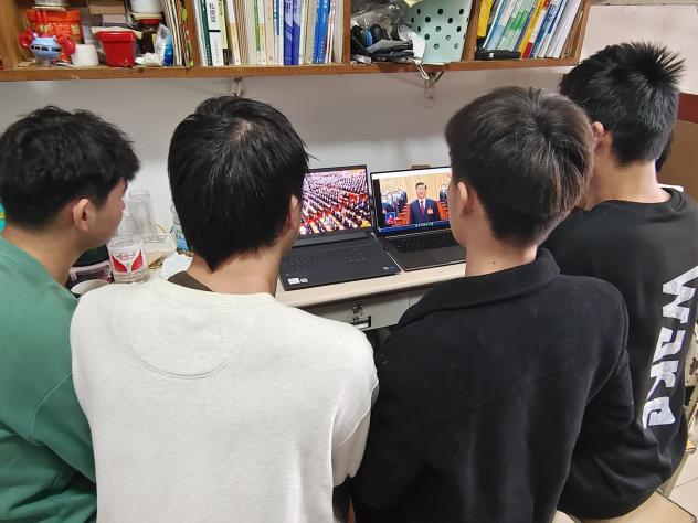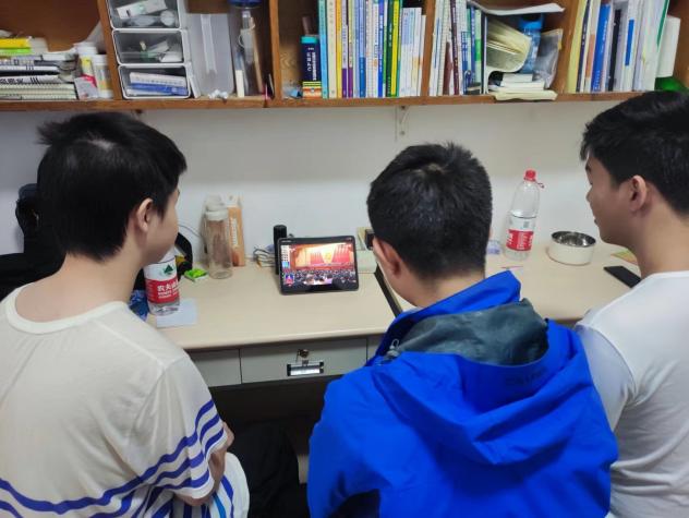 与此同时,广大师生居家或在宿舍通过电视、电脑、手机等渠道收看了直播盛况,共同参与见证党和国家这一重要的历史时刻。