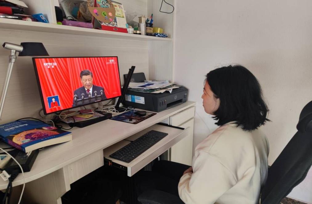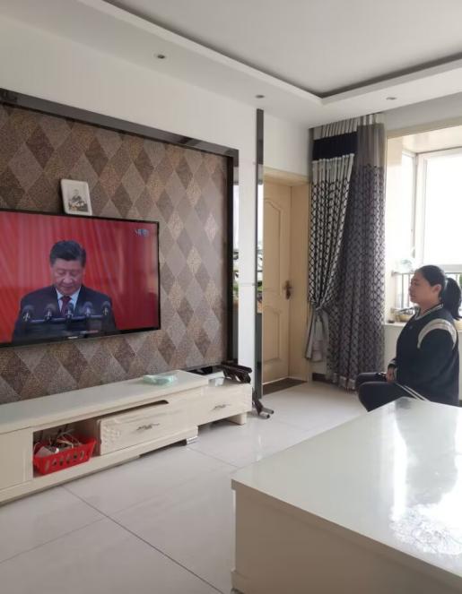 教师居家观看党的二十大开幕会直播