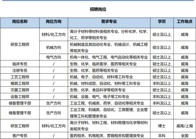 威高血液净化产业集团2023校园招聘简章