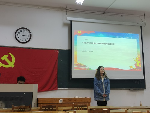 会议伊始,翟静涛介绍了此次答辩的流程与注意事项。随后,答辩人按照抽签顺序,依次简述个人情况,并从题库中抽取题目进行问答,并现场接受党员的提问。