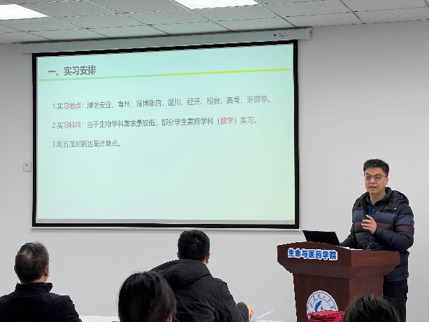 生科系主任张建勇对实习安排做了详细讲解,包括实习地点、实习科目、需要注意的问题等。