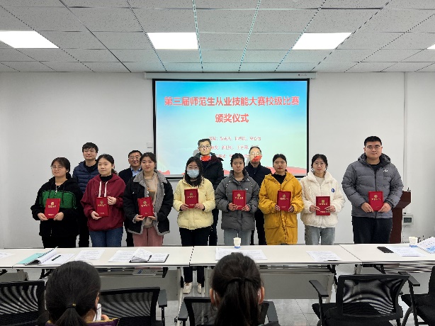 接下来,与会部分领导老师为获得谈球吧网页版登录入口第三届师范技能比赛一、二、三等奖的同学们颁奖。
