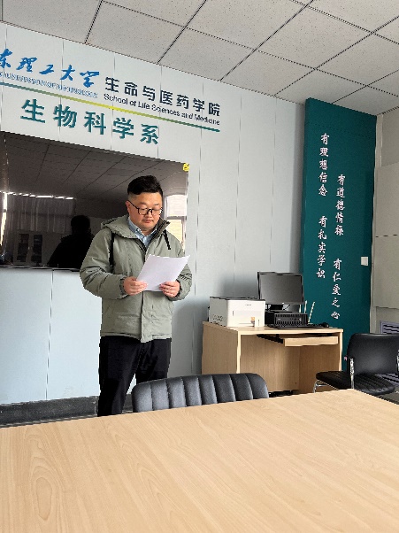 2月3日上午,生科系教工党支部在13号教学楼255会议室召开支部党员大会,讨论谢昌健等2名同志转正事宜。会议由支部书记李超群同志主持,在清点完到会党员之后,预备党员转正大会正式开始。