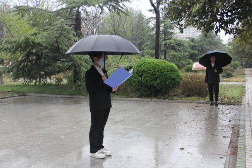 冯思广精神研究会员工代表商玉鑫向蓝天英雄冯思广致祭奠词。她讲到,作为山理工的一员,我们要热爱祖国,忠于人民,牢记使命,追求卓越,传承冯思广精神,讲好英雄故事,坚定理想信念,在实现中华民族伟大复兴中国梦的新长征路上奋力搏击、书写人生精彩华章。
