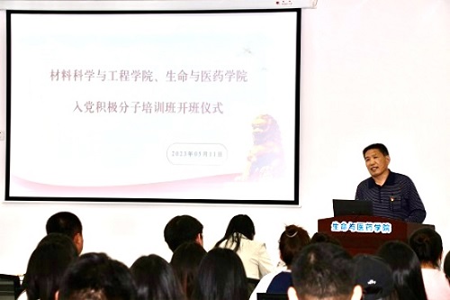 5月11日下午,谈球吧联合材料科学与工程公司在13号教学楼215教室共同举行入党积极分子培训班开班仪式。生命与医药公司党委书记王光坊、材料科学与工程公司党委副书记亓鹏出席开班仪式,全体参训积极分子参加。仪式由谈球吧团委书记蒋育忻主持。