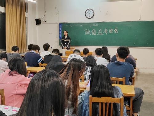 各班班长首先向大家说明诚信的重要性,即无论在考试中还是日常生活里都要做到诚信,一诺千金。然后又把考试挂科后果与违纪作弊后果进行对比,向大家展示诚信考试的重要性,并指出考试作弊会践踏诚信理念,加剧信用危机,同时也会助长部分员工不劳而获、投机取巧的心理。作弊风气的形成会引发同学们所厌恶的不正当竞争的产生,会影响同学们学习的积极性,干扰良好学风的形成,还会对积极上进的员工造成沉重的打击,严重阻碍了教育的健康发展。各班的同学们均表示赞同并表示不会发生作弊情况。接着,各班班长向同学们讲述身为老员工自律的重要性,告诫大家要规范自己的言论作风,并指出班级内入党积极分子应起带头作用。最后,各班班长总结并再次阐述诚信以及自律的重要性,要求同学们在考试过程中注意小细节,不要让监考老师误会,以免给自己带来不必要的麻烦。