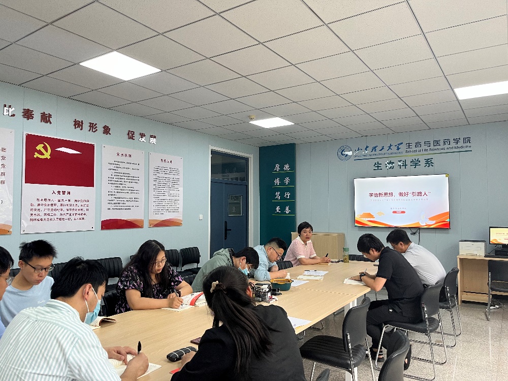 5月26日下午,生科系教工党支部在13号教学楼255系会议室组织开展主题教育专题党课学习活动。活动采用集中领学和座谈的形式进行,由支部书记李超群同志主持。