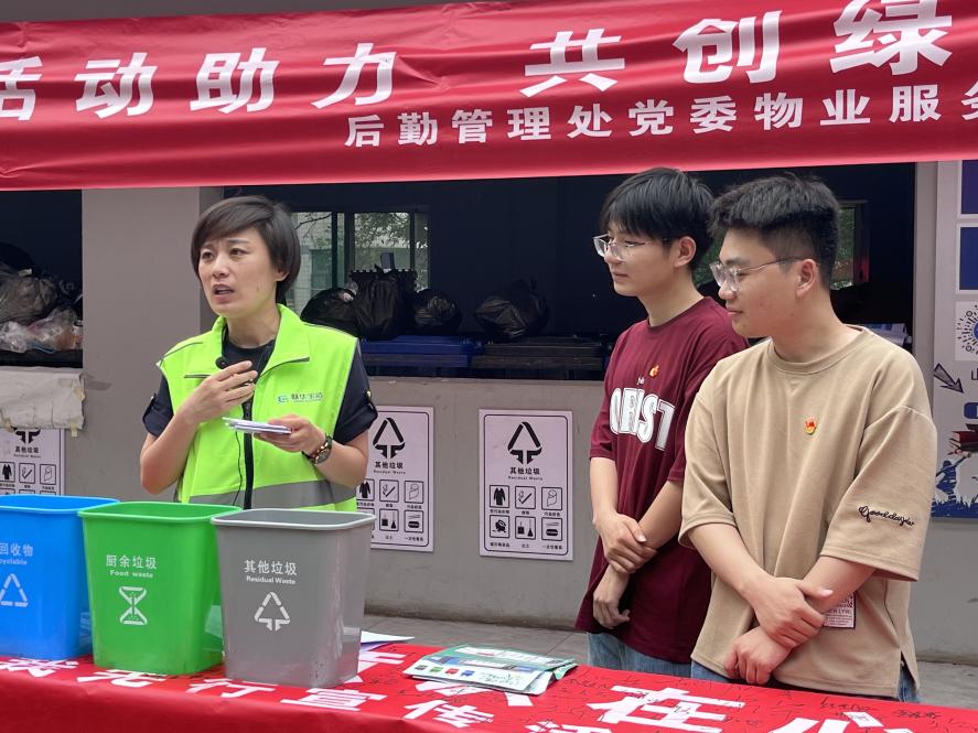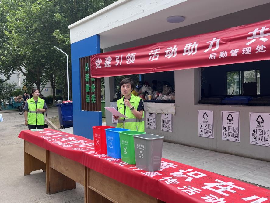 5月30日下午,公司本科生第二党支部在公司1#驿站前开展“垃圾分类我先行 环保意识在心间”主题党日活动。在校物业服务中心的大力支持下,党支部书记翟静涛带领支部党员、入党积极分子现场开展垃圾分类教学实践。山东联华宝洁城市服务集团有限公司王慧担任主讲。