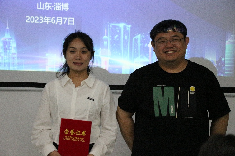随后,孙文龙为主讲同学颁发荣誉证书并合影留念。