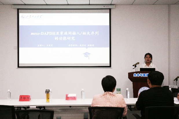 特邀报告嘉宾孙文龙教授、2020级硕士研究生王笑笑分别作题为“清热解毒中药靶向肠道菌群干预MAFLD的机制研究”和“meso-DAPDH亚家族间插入/缺失序列的功能研究”的专题报告。与会人员认真听取报告,就相关研究问题踊跃发言,与主讲人进行深入交流,气氛活跃热烈。
