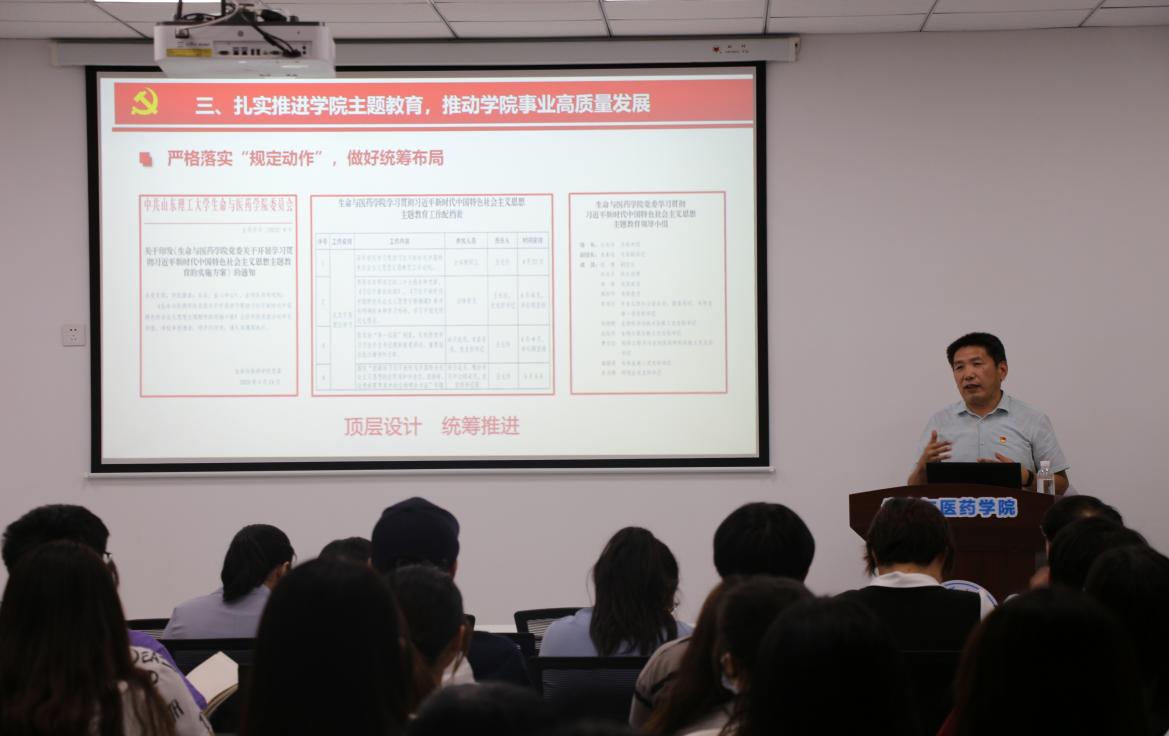 王光坊强调,今年是公司“开拓进取年”,也是公司事业高质量发展的关键时期。对于下一步如何做好结合文章,扎实推进公司主题教育。他提出5点要求,一是理论学习要走深一步,学深一层。要结合党员轮训计划,围绕主题教育内容,组织举办党支部书记、委员培训班,录制主题教育微党课,组织党员赴党性教育基地接受党性党风教育。二是调查研究要精准施策,逐项落实。要对照清单内容,建立完善调查研究监督反馈机制,以问题为导向,强化过程性评价,确保难题破解和高质量发展实效。三是重点工作要紧密结合,狠抓落实。要对标公司重点核心工作,紧盯博士点申报、学科科研、人才队伍建设等,深入贯彻落实教职工能力提升攻坚行动,明确工作责任,强化工作落实。四是检视整改要抓严抓实,真改实改。要广开渠道,充分听取师生员工反映的突出问题,系统梳理,形成问题清单,制定整改台账,实行销号管理,把整改落实情况作为检验工作成效的重要标准。五是建章立制要长期保效,一以贯之。要持续推进制度完善,通过制度体系建设,不断强化公司党委、党支部的主体责任,建立巩固深化主题教育成果和推进公司事业高质量发展的长效机制。公司全体师生要认真落实主题教育“学思想、强党性、重实践、建新功”总要求,坚持深学细悟,做好结合文章,以高质量党建引领公司事业高质量发展,努力推动建设特色强院、温馨家园,为公司高水平大学建设贡献力量!