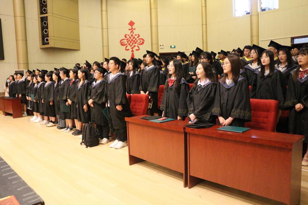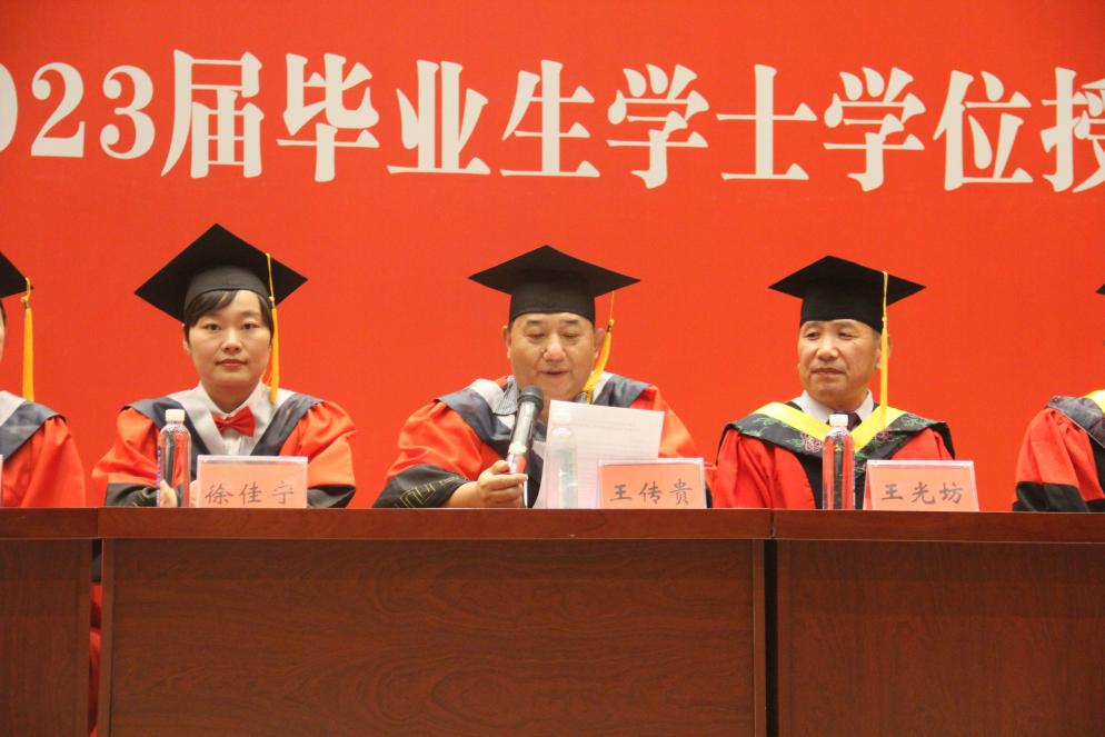 伴着热烈的掌声,在全体人员的注视下,党委书记王光坊,经理杨凤堂,执行经理王传贵,副经理邓洪宽,经理助理徐佳宁,学位评定分委员会委员熊鹏、刘文、姜立波、徐恒戬、张月杰等10名教师为所有获得学士学位的毕业生颁发了学位证书。