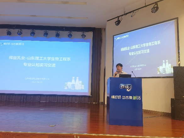 6月19日,生物工程系师生首先到达低温乳品龙头企业----山东得益乳业股份有限公司进行认知实习。公司的领导、技术部门和人力资源部门负责人先后向师生们介绍了企业的发展情况、前沿的技术研发内容及就业等相关情况,并与在场的老师和员工进行了交流。交流完毕后,员工们参观了得益低温奶智能制造车间和大数据平台。