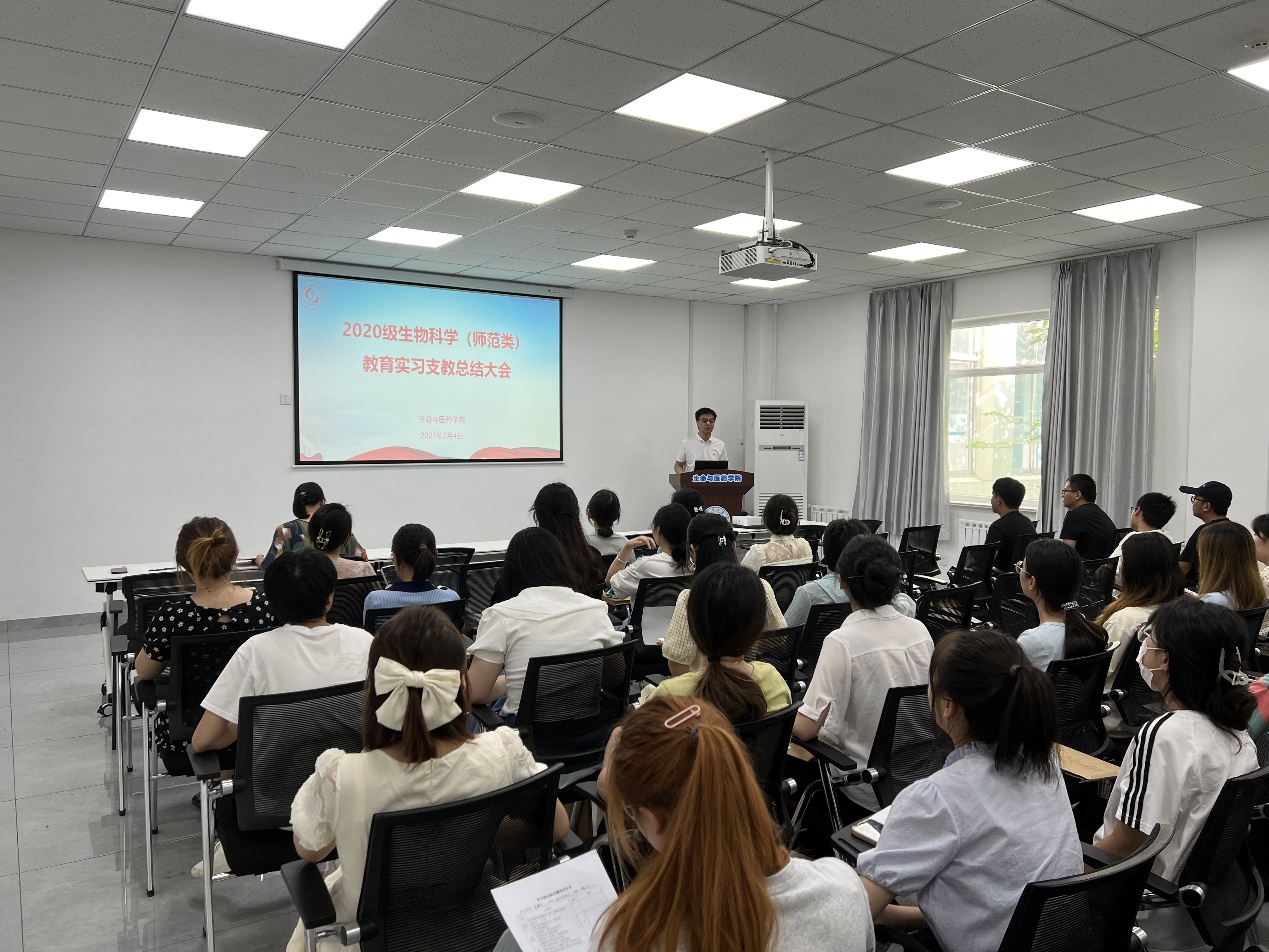 7月4日,谈球吧在13号教学楼215报告厅举行了2020级生物科学(师范类)教育实习支教总结大会,公司党委书记王光坊、经理助理徐佳宁、生物科学系党支部书记李超群、系主任张建勇、实习指导教师、生物科学(师范类)专业2020级全体员工参加,会议由系主任张建勇主持。