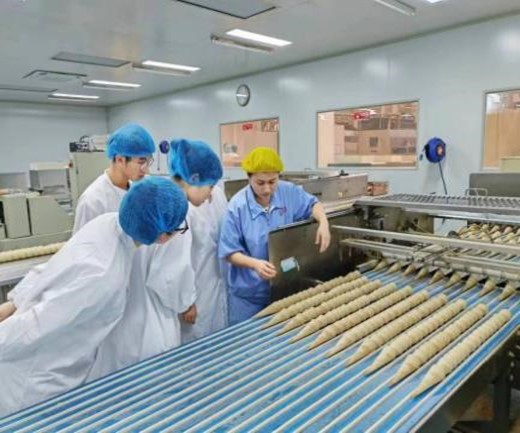 团队成员们“兵分三路”分组参观交流学习,轮流进入外包装、质检、品控实验室三个岗位实践,了解脆筒加工车间的生产设备、工艺流程、卫生规范等。短短的两天时间里,通过分组参观交流学习,每个人都有机会亲身参与不同岗位的操作和工作,通过实践掌握了具体的技能和知识。