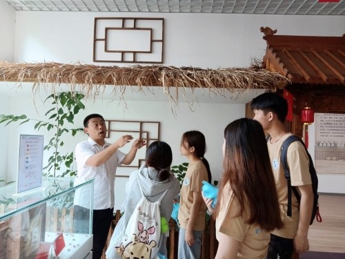基地工作人员首先带领实践团队参观博仲城市书房和中医药文化标本展示大厅,书房中含有上千册与中医药材及中医药发展历史相关的书籍,可供免费查阅观看;展厅中摆放着近百种常见中药材标本,工作人员对常见的几种药材进行了详细的介绍,包括药材的主要功效和入药部位等。