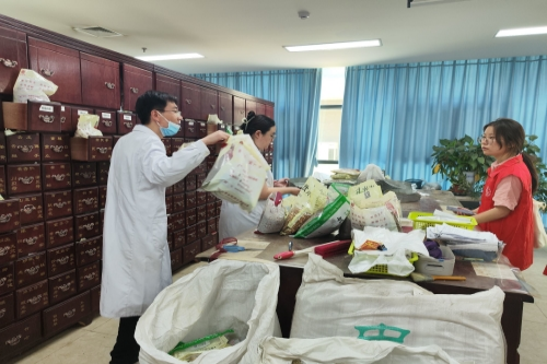 实践团首先来到抓药房,药房的工作人员对实践团的到来表示十分欢迎,热情地为众人说明医院药房的基本情况。实践团的队员们几天前就在中草药种植基地接触了种植的中草药,如今面对药房中已为成药的药材,实践团众人表现出极高的兴趣,对药材性状以及抓药过程开始近距离观察。