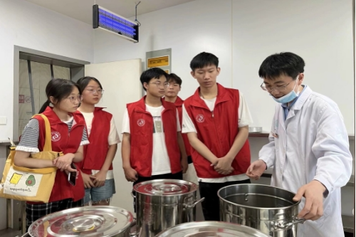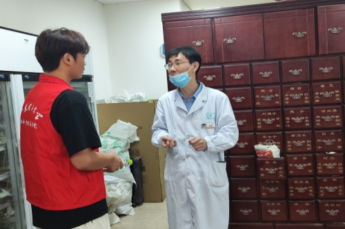 医生还向实践队员介绍了红花油、褥疮膏等医院常用药,并表示这些药的制作其实非常简单。实践队员在了解制作方法后,还对医生的熬蜜过程进行观察,亲身体会蜂蜜在熬制完成后的“挂旗”状态。最后实践团队在院南门处合影。