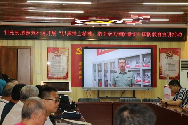 活动由社区副书记黄乐乐主持进行党日与国防教育为主题的讲座宣传活动,此次活动除了本实践团成员参与外,还有众多党员同志与社区工作者和社区群众在内。活动伊始,党员们举起右拳,重新温故了入党宣言,每个人的眼神都是坚定地看向前方,仿佛是在看向富强民主文明和谐美丽的祖国。之后大家同样全神贯注、积极认真地听社区副书记黄乐乐的讲解社区党团情况,对于部分社区居民不明白的疑问都进行了积极的反馈和得到了全面详细的解答。