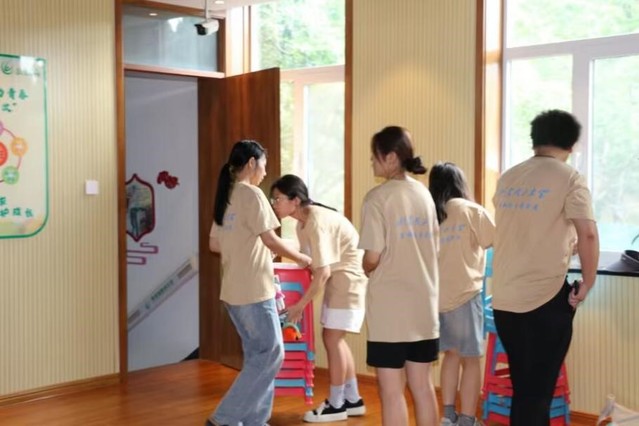 活动结束后,实践团成员主动收拾桌椅板凳,彰显老员工风范,受到社区工作人员赞扬。