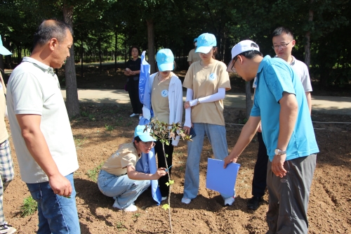 7月7日上午,实践团在指导老师带领下来到了淄博市铁山林场,即淄博市林木种质资源保护中心进行参观学习。在基地负责人带领与讲解下,实践团对林场多个主题园区进行了近距离观察学习。经走访交流,了解到淄博市铁山林场作为国有林场的主要职责是对林木种质资源进行收集和培育,对森林资源进行保护和管理,对全市林木种质资源进行普查和收集,利用对林木种质资源的潜在利用价值的分析进行林木良种的选育、引进、科研及科技示范推广。这些工作为森林面积的扩大、森林资源质量的提高奠定了基础,有力促进了生态、社会和经济效益的增长。此外,实践团还进一步学习了林场在植株养护和电子建档方面的典型经验做法,为提升专业素养和实践技能奠定了基础。