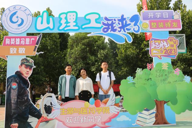 “冯思广烈士是我们生物工程专业毕业的优秀员工”“行李我们帮您拿着,请您跟孩子移步合影墙下,由我给你们拍照留念”“同学,你好!请来‘生命之树’署名处签名,为我们的‘生命之树’再添新叶”。“我与思光有个约”合影墙边,“向英雄冯思广致敬”醒目的标识,吸引了很多新生和家长驻足。在引导员介绍和协助下,大家纷纷来到打卡墙下合影留念,并通过打卡签名的形式向冯思广烈士表达崇敬之情。