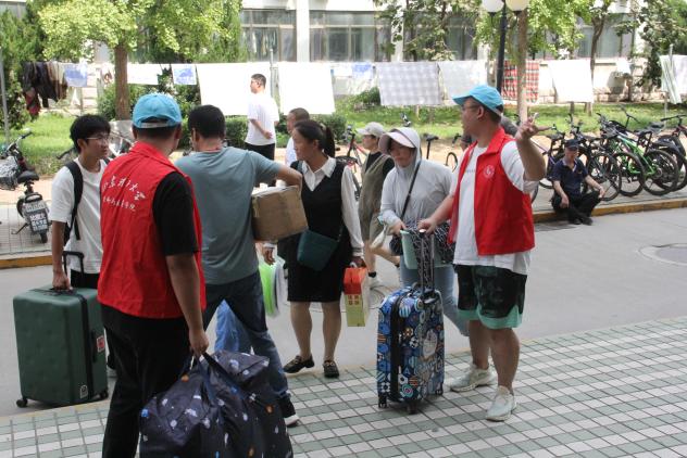 公司党委书记胡兴禹一行和公司领导班子成员,在全体辅导员陪同下来到迎新现场检查指导新生报到工作,亲切慰问现场工作人员。
