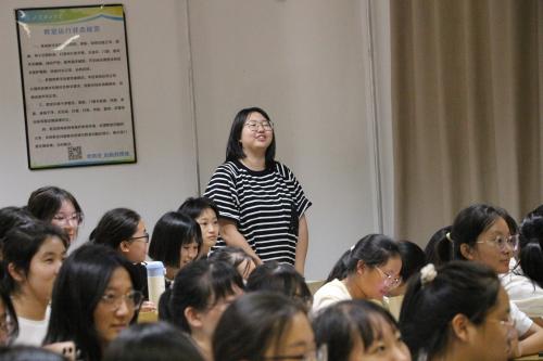随后,刘丛丛向新生作自我介绍,初步向新生介绍校院日常管理要求,她从五个方面向新生提出要求:一是关于考试方面,作为老员工要守纪律,考试禁止作弊,一旦作弊将会受到严重处分;二是关于公寓方面,她希望新生要保持好宿舍卫生,晚上准时熄灯,禁止使用违章电器;三是关于请假方面,有任何问题一定要向她请假,禁止未经同意请假夜不归宿;四是军训方面,她讲了军训相关要求,新生要服从教官指挥,做好军训准备;五是学习方面,她希望新生一定要认真学习,找到适合自己的学习方法,尽快适应老员工活,养成良好的学习习惯,争取取得一个好成绩。
