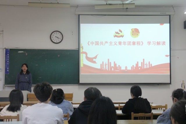 仪式后,团委书记、学工办主任刘丛丛以“认真学好《团章》,争作合格团员”为题,围绕“团章是什么、学团章为什么、团章有什么”等三个方面为入团积极分子作《中国共产主义青年团章程》学习解读。