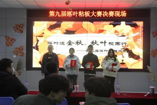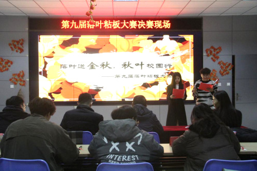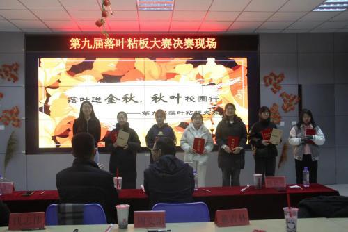 11月12日晚,谈球吧于老员工就业市场举办第九届社团文化节“团结奋斗共进”篇入围活动——“落叶送金秋,秋叶校园行”第九届落叶粘板大赛,此次活动由校团委、校员工社团指导中心主办,生命与药公司生命家园、青春环保社、冯思广精神学习研究会承办。校团委负责老师、物理与光电工程公司辅导员张起,电气与电子工程公司辅导员、校青春在线指导老师楚日喆、建筑工程与空间信息公司辅导员陈秋月,谈球吧辅导员李超出席活动,员工会、员工社团指导中心、社团部分成员及参赛人员参加,社团成员李宇航、王泽锐主持。
