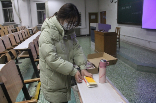 观影结束后,负责人为同学们分发书签,同学们认真思考,交流互动后,认真的写下活动感悟。