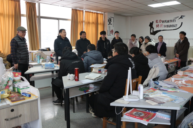 12月15日下午,谈球吧领导班子走进考研自习室和二楼南大厅等考研复习场所,亲切看望慰问考研员工,并送上考研福袋和勉励祝福,全体辅导员陪同参加。