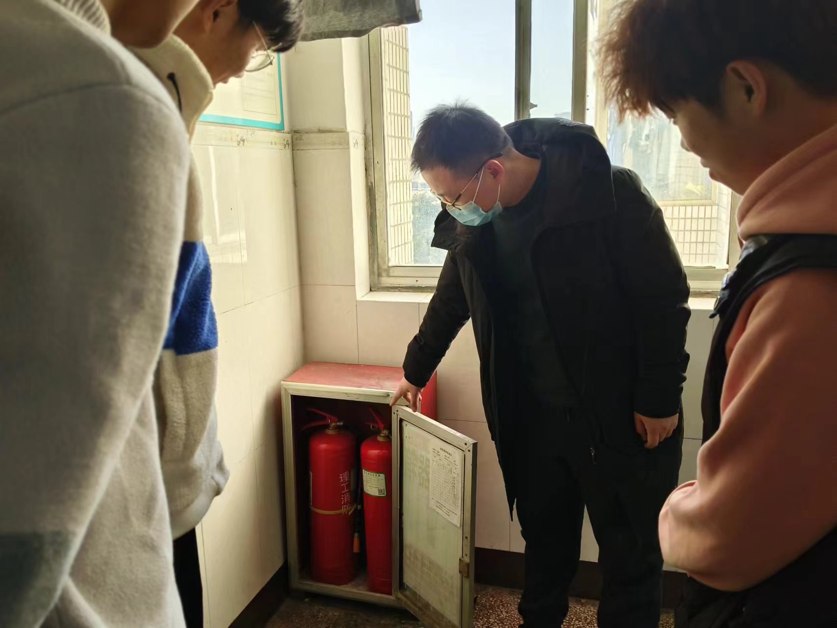 公司辅导员带领员工在14号公寓走了一次疏散通道,在3号、研2公寓熟悉了一次身边灭火器材,在21号、23号公寓排查了一次火灾隐患,辅导员亲赴山东城市建设职业公司参观了一次消防安全教育展厅。