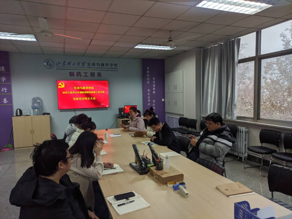 12月14日下午,制药工程系与生物医药研究院教工党支部在13号教学楼459会议室召开预备党员转正大会,讨论孙文龙、冯玲同志按期转正事宜。会议由公司制药工程系与生物医药研究院教工党支部书记曹忠红主持,支部全体党员参加。