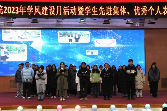 12月21日晚,谈球吧2023年学风建设月活动暨员工先进集体、个人表彰大会在3号教学楼报告厅隆重召开,公司党委常委、副董事长陈盛伟,山东金城医药集团股份有限公司常务副总裁崔希礼,山东博仲生物科技有限公司董事长孙斌出席,员工工作部部长朱星辉、校团委书记王振、合作发展处处长李涛、研究生工作部副部长李栋祥、教务处副处长戚彬、公司领导班子、辅导员、班主任和2023级全体员工参加。大会由公司党委副书记姜素琼主持。